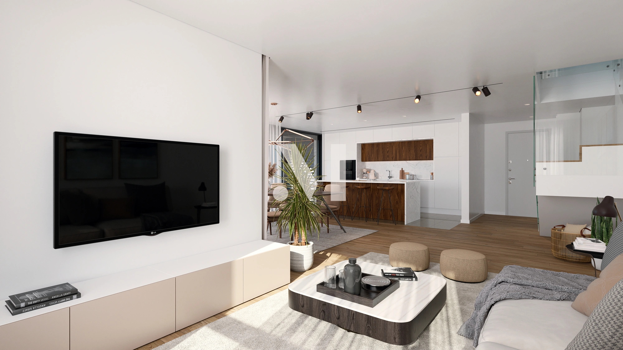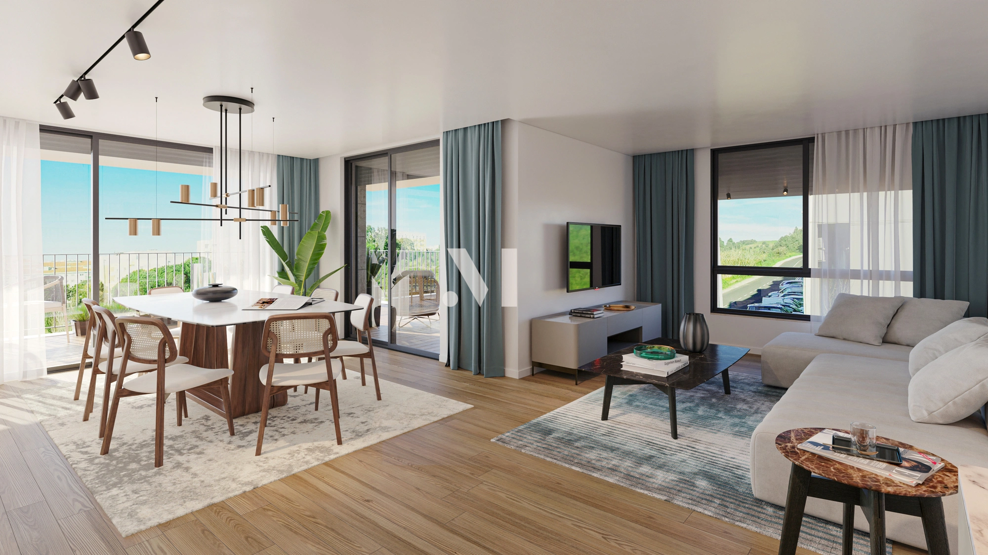 Spacious balconies and terraces create functional, harmonious environments, complemented by modern kitchens with islands, equipped with top-quality appliances, and noble finishes such as natural oak floors and contemporary sanitary fittings.