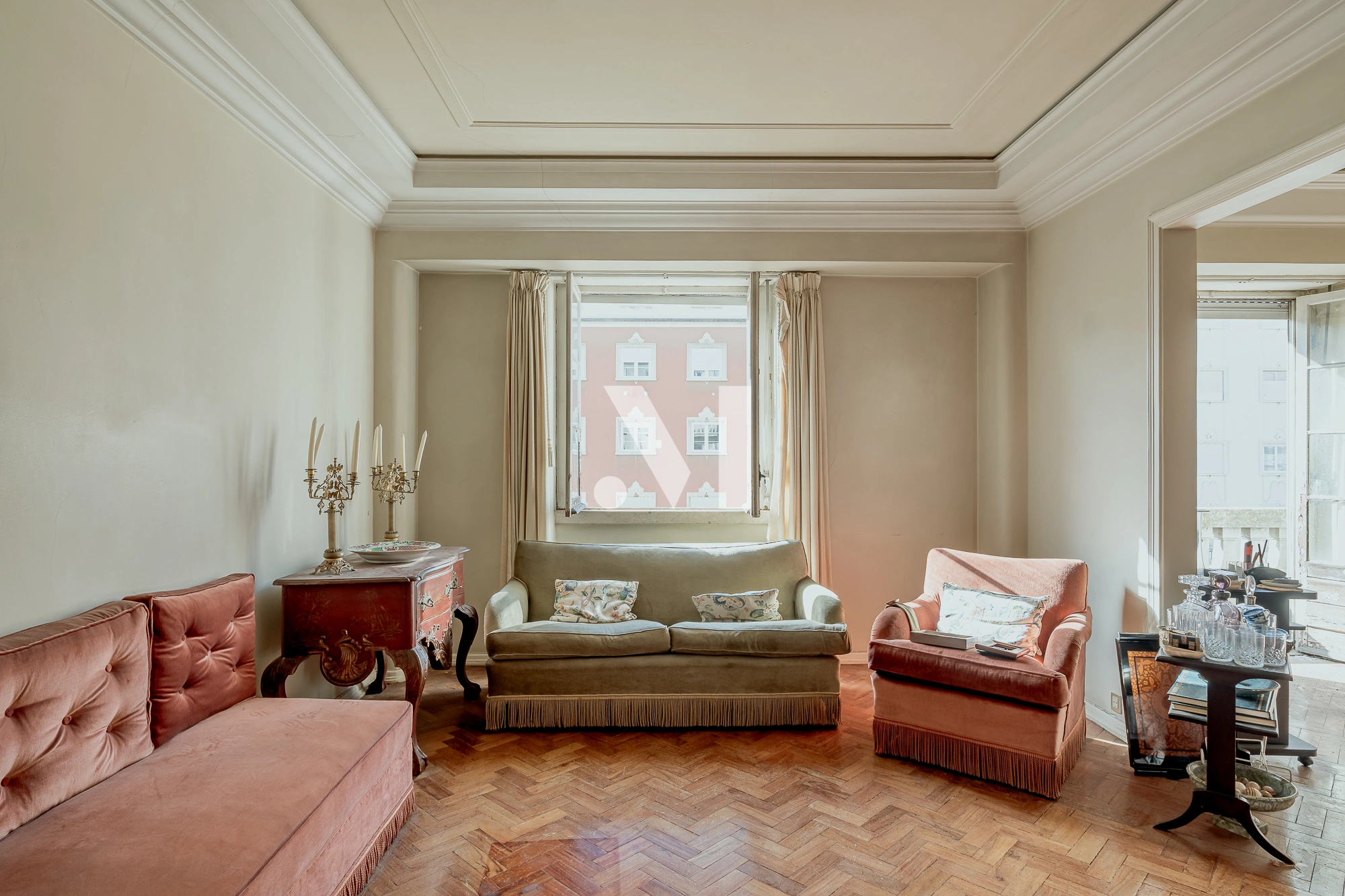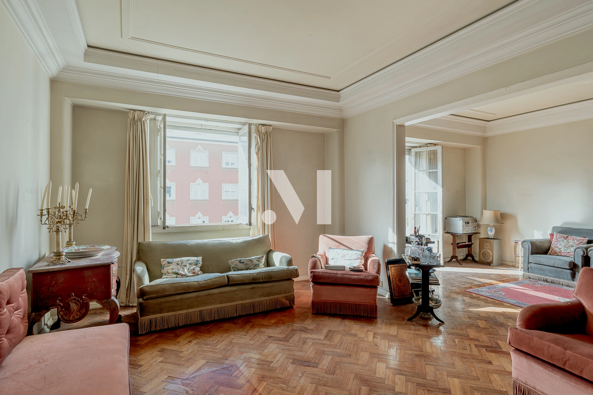 Cet appartement préserve l’authenticité de l’architecture lisboète des années 40, reflétée dans des éléments originaux tels que le parquet en bois, les hauts plafonds et les armoires encastrées, qui renforcent son caractère classique et distinctif. Les surfaces généreuses et l’organisation équilibrée des espaces permettent une grande flexibilité dans la création de différentes solutions d’aménagement. La propriété dispose de deux salons avec balcon. L’excellente luminosité naturelle, fournie par les grandes fenêtres et l’exposition solaire nord-sud, valorise encore plus l’espace et favorise un projet de réhabilitation élégant et intemporel, inspiré du caractère original du bâtiment et avec un fort potentiel de valorisation.
