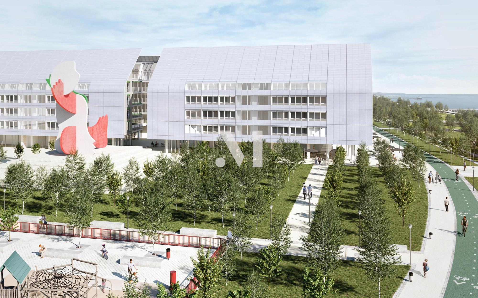 No espaço exterior vive-se a liberdade do resplandecente espaço verde paisagístico do Parque das Nações, complementado com várias zonas de lazer, espaços comerciais, esplanadas, parques infantis e uma ciclovia junto ao rio.