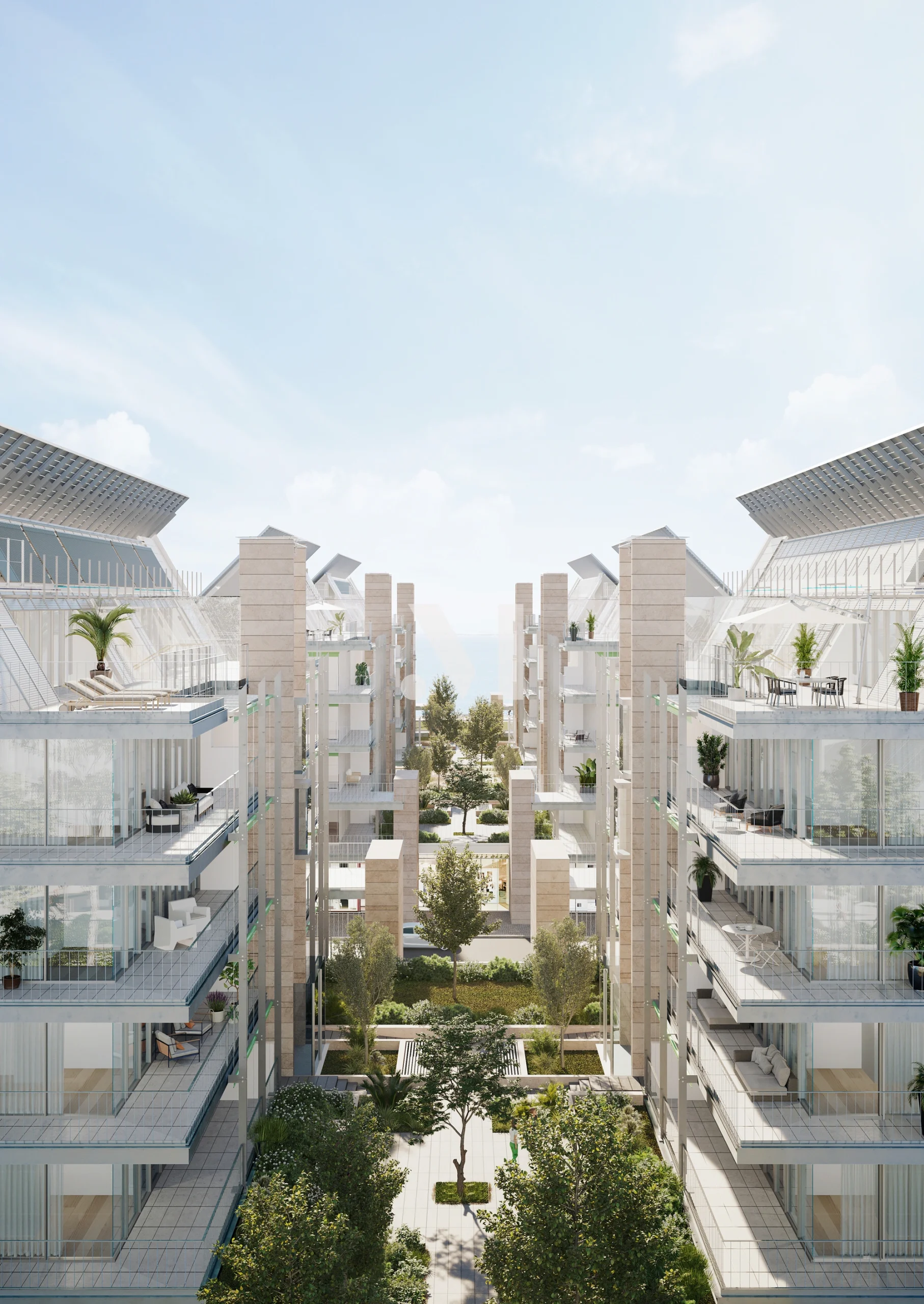 No espaço interior do empreendimento desfrutará de um generoso jardim, solarengos terraços e extensas varandas que têm tudo para o seu refúgio.